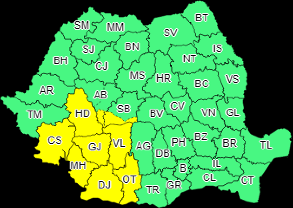 Administrația Națională de Meteorologie a emis, cu puțin timp în urmă, un COD GALBEN de instabilitate atmosferică temporar accentuată.