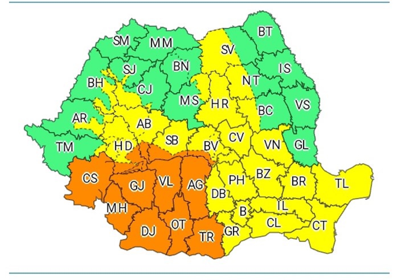 În intervalul menționat, în Oltenia, vestul Munteniei, sudul Banatului și Carpații Meridionali, temporar va ninge abundent (30 – 50 l/mp), iar stratul de zăpadă va fi consistent. Vântul va prezenta intensificări cu viteze de 40…55 km/h.