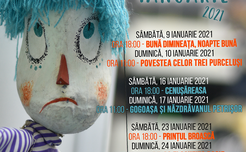 Publicul mai poate vedea în luna ianuarie și spectacolele: Cenușăreasa, Gogoașa și Năzdrăvanul Petrișor, Prințul Broască, De-aș fi Scufița Roșie.