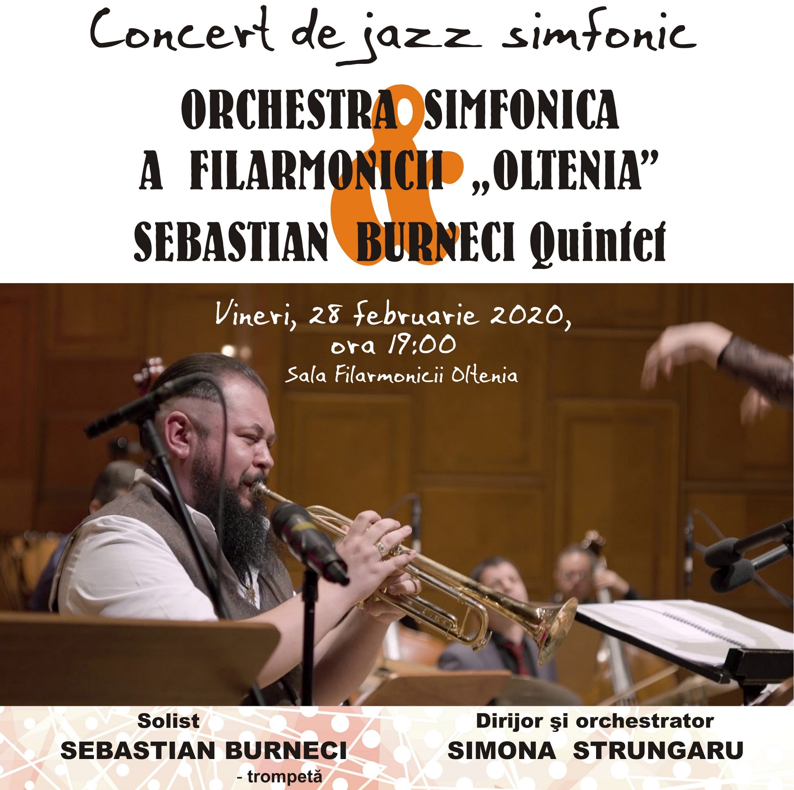 Vineri, 28 februarie 2020, începând cu ora 19:00, Orchestra simfonică a Filarmonicii „Oltenia” Craiova şi Sebastian Burneci Quintet, sub bagheta Simonei Strungaru, susţin un concert de jazz simfonic. În program sunt piese de pe CD-ul de autor, „Unspoken”, al trompetistului Sebastian Burneci, distins cu premiul CD-ul anului 2018 în cadrul Premiilor Muzicale ale Fundaţiei Muzza. “Unspoken este rezultatul a mai bine de 15 ani de experienţe muzicale, dar şi sociale, este totodată o concluzie după aceşti ani în scena românească de muzică mai mult sau mai puţin comercială, dar şi un nou început.” (Sebastian Burneci)