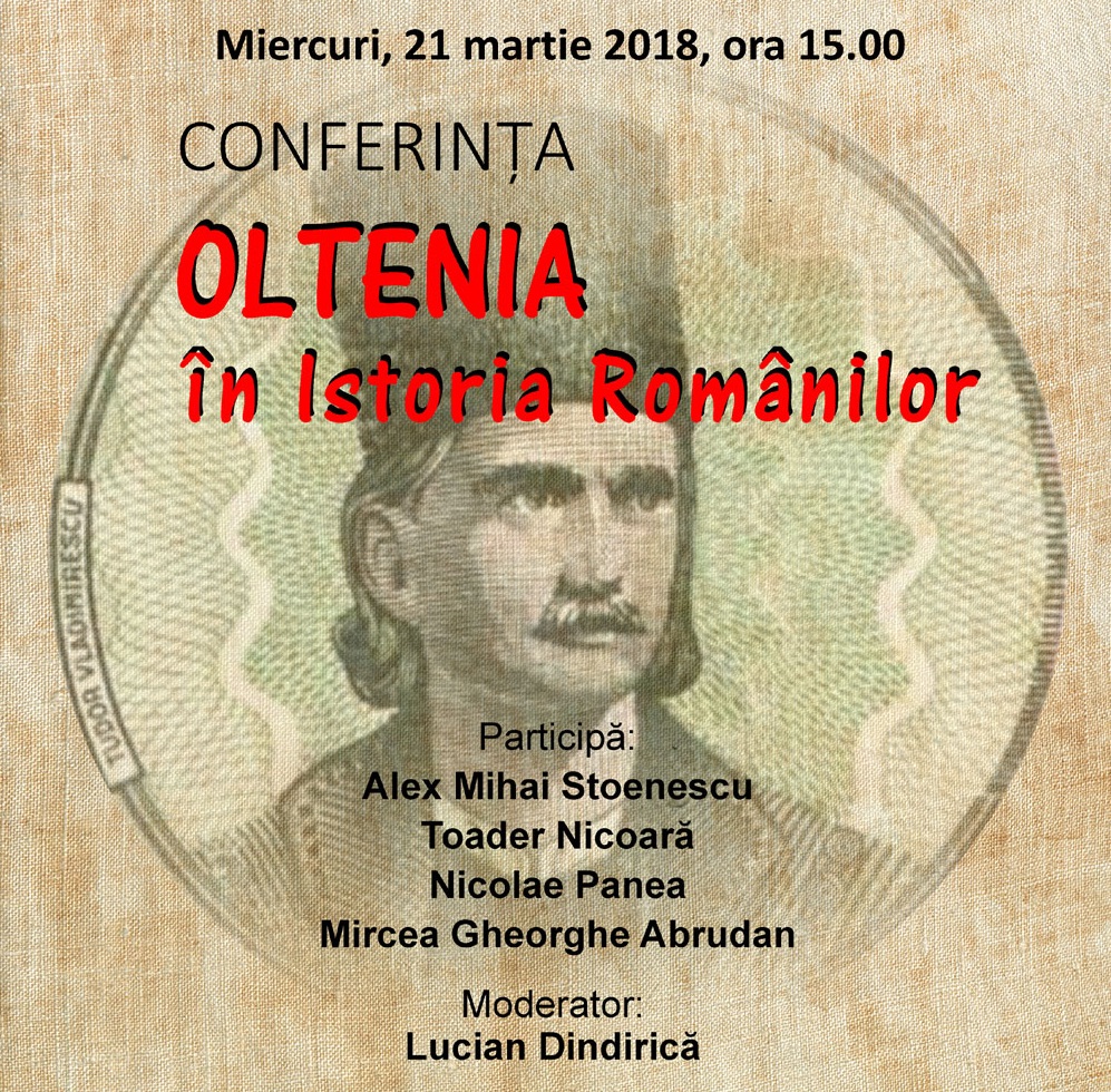 Biblioteca Județeană “Alexandru și Aristia Aman” organizează miercuri, cu ocazia “Zilei Olteniei”, începând cu ora 15.00, în sala “Acad. Dinu C. Giurescu”, conferința “Oltenia în Istoria Românilor”. Acțiunea vine să încununeze activitățile organizate de Biblioteca Județeană “Alexandru și Aristia Aman” în direcția marcării “Zilei Olteniei”. Conferința constă într-o serie de comunicări și discuții între vorbitori și public. Cei care participă cu prezentări sunt istoricii Alex Mihai Stoenescu și Toader Nicoară, rectorul Universității “Constantin Brâncuși” din Târgu Jiu, respectiv filologul și antropologul Nicu Panea, prorectorul Universității din Craiova, și public.