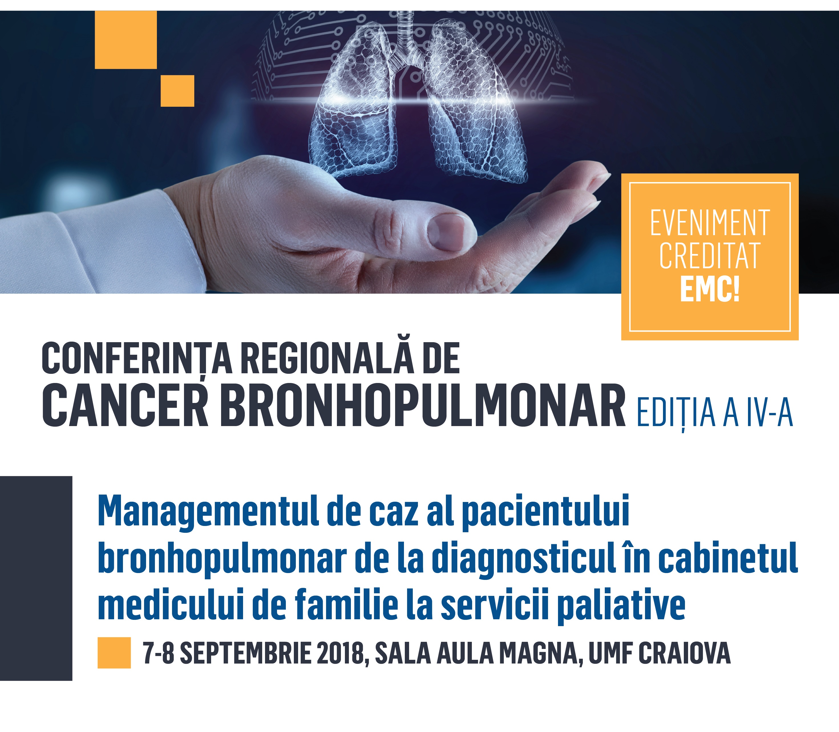 Stadializarea cancerului bronhopulmonar în imagini, particularități ale tratamentului dependenței tabagice la pacientul cu cancer pulmonar, rolul imunoterapiei în cancerul bronhopulmonar, aspecte privind îngrijirea paliativă a pacientului sau importanţa terapiei de suport pentru pacienţii bolnavi de cancer sunt câteva dintre temele ce vor fi dezbătute pe parcursul celor două zile de eveniment.