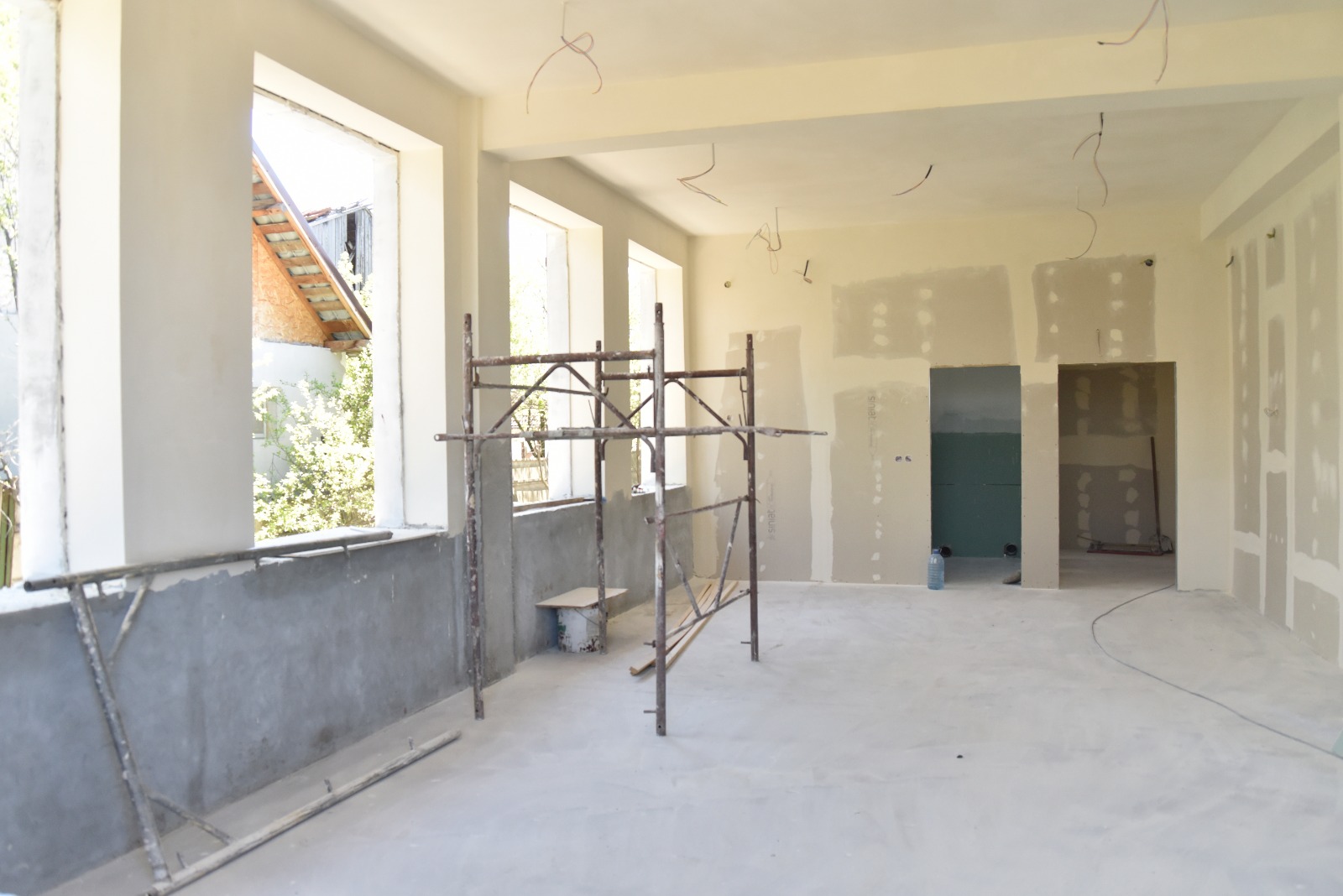 Corpul vechi de clădire a fost reabilitat complet prin decopertarea tencuielii până la structura din cărămidă a pereților. S-au efectuat consolidări prin turnarea unei fundații din beton armat atât la interior cât și la exterior. Pe colțurile clădirii s-au turnat stâlpi din beton armat. Vechea învelitoare a fost înlăturată, s-a turnat un planșeu nou și s-a realizat o altă învelitoare comună cu noul corp de clădire din țiglă metalică. La exterior s-a realizat un termosistem armat cu plasă și s-au refăcut tencuielile.