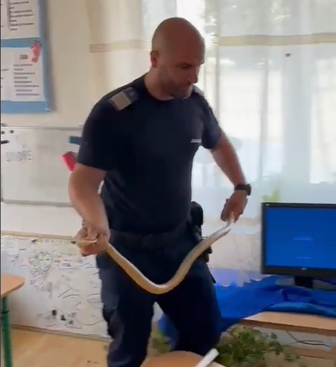 În urma unui apel primit prin Sistemul Național Unic Apeluri de Urgență 112, efective din cadrul Grupării de Jandarmi Mobile „Frații Buzești” Craiova au fost solicitate astăzi să intervină la Grădinița din satul Corlate, județul Dolj, în proximitatea secției de votare numărul 384, după ce un șarpe a fost observat în clădire.