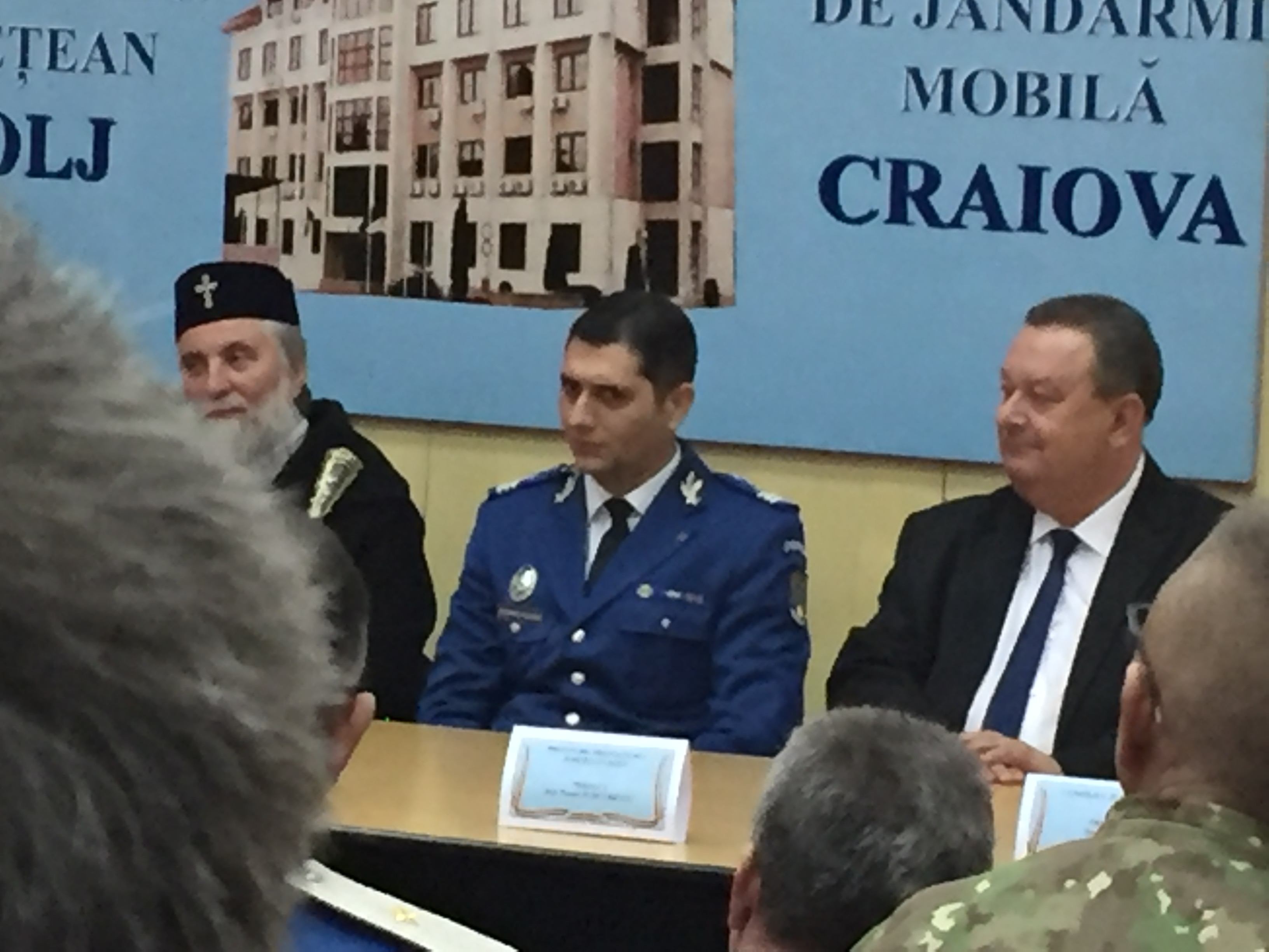 Cosmin Raul Mirea a primit, marți, numirea definitivă pe funcția de comandant al Grupării Mobile de Jandarmi Craiova. Acesta este locotenent colonel, ofițer cu o carieră de aproximativ 15 ani în slujba Jandarmeriei Române. „Este o zi specială pentru mine (a spus cel pe care, reprezentanții mass-media îl știu de foarte mulți ani ca purtător de cuvând al Jandarmeriei, cu emotie mai mare decât oricând – n.r.). Mă onorează prezența dumneavoastră. Aș începe cu o poveste de anul trecut, mai precis pe 1 februarie 2017. Comandantul Grupării de la acea vreme, colonelul Dina Ion, m-a chemat și mi-a oferit postul de adjunct al domniei sale cu înputernicire, urmând să susțin examen de titularizare și, dacă trec, să devin adjunct cu dreptul depline”, a declarat Mirea. La puțin timp după aceea, mai precis pe 27 iulie 2017, colonelul Dina a decis să se pensioneze, iar Cosmin Raul Mirea a fost înputernicit la comanda Grupării Mobile de Jandarmi. „Trecuseră două luni și jumătate de când am fost împutericit pe funcția de adjunct când am aflat că trebuie să rămân singur, să preiau comanda, întrucât domnul Dina a decis să se pensioneze. Nu am avut nicio teamă chiar dacă responsabilitățile sunt multe. Sunt ofițer de carieră, dar de pe funcția aceasta trebuie să gestionezi multe domenii în care nu ești foarte bine pregătit, respectiv financiar, logistică, resurse umane, dar suntem o echipă și acest lucru contează foarte mult. Am preluat comanda acestei unități, în fapt, cu data de 1 august, zi în care m-am și născut. Nimic nu este îmtâmplător, spun eu. La concurs am extras biletul numărul unu. Responsabilitățile sunt mari pentru că această unitate este una strategică pe segmentul ordinii și siguranței publice. Este o unitate care de-a lungul timpului și-a câștigat un loc în rândul unităților din Jandarmeria Română. Totul se datorează colectivului și conducătorilor instituției și suntem responsabili să continuăm în aceeași direcție”, a continuat Cosmin Mirea.