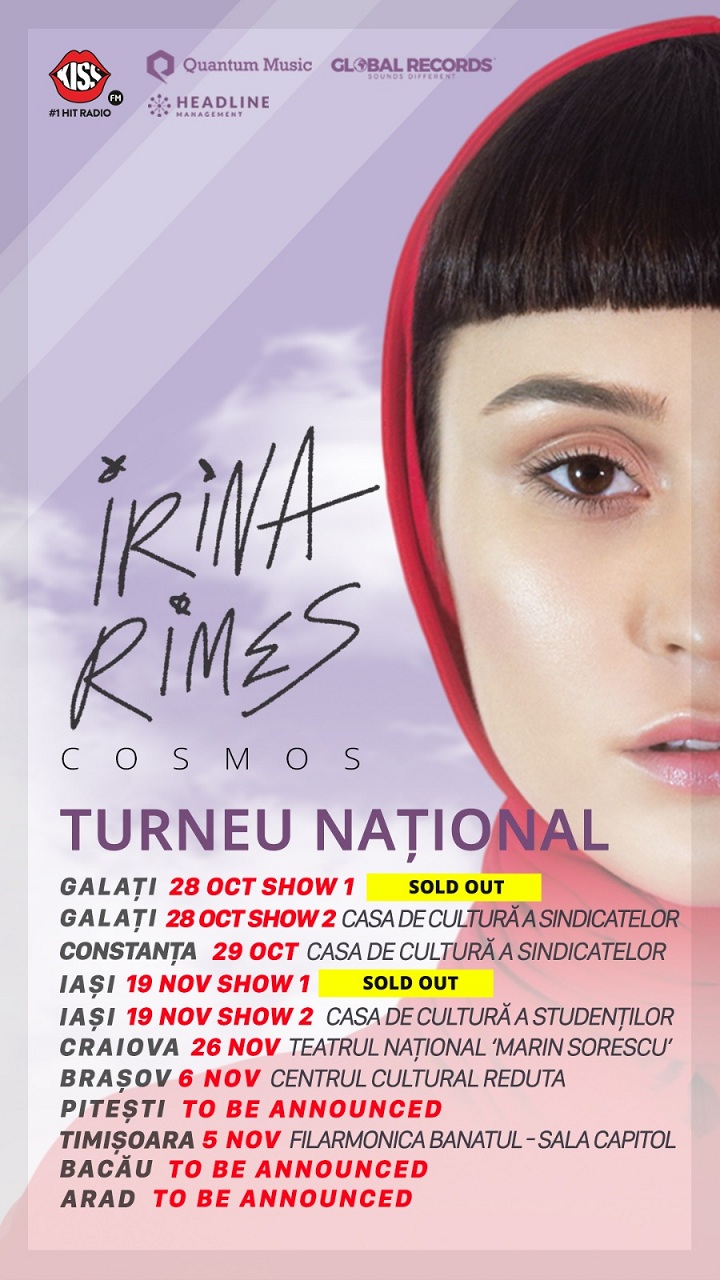 Irina Rimes, una dintre cele mai talentate și complexe artiste din Romania, dă startul celui de-al doilea turneu din cariera sa. COSMOS reprezintă o poveste inspirată din trăirile, sentimentele și emoțiile artistei, exprimate atât prin intermediul pieselor, cât și prin poeziile din cartea albumului.
