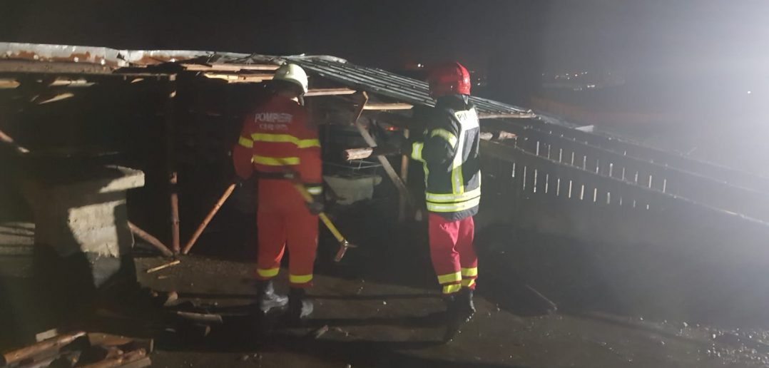 Detasamentul 1 Pompieri Craiova intervine pe strada Dr. Victor Gomoiu, bl. K 5 la degajarea unui acoperis de bloc dislocat de vânt pe o suprafață de aproximativ 35 mp.
