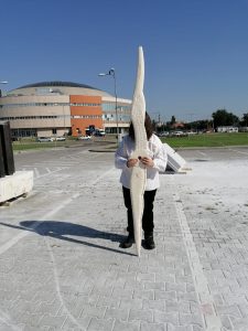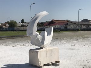Curatorul Drumurilor Brâncușiene”, Petre Virgiliu Mogoșanu, a vorvit cu patos despre … ”Patos”. „Am plecat de la ideea, cum un artist încearcă să-și pună practică , tridimensional sau bidimensional gândurile, și m-am folosit de câteva tensiuni pe care le-am realizat în blocul de marmură”.
