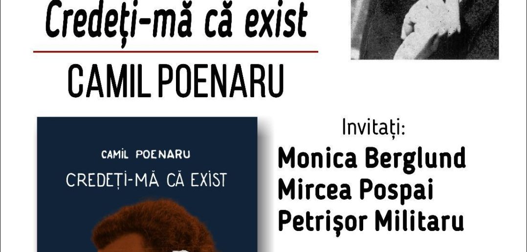 Joi, 2 aprilie, de la ora 17:00, în sala „Acad. Dinu C. Giurescu”, la Biblioteca Județeană Alexandru și Aristia Aman Craiova va avea loc lansarea volumului de versuri „Credeți-mă că exist” semnat de Camil Poenaru.
