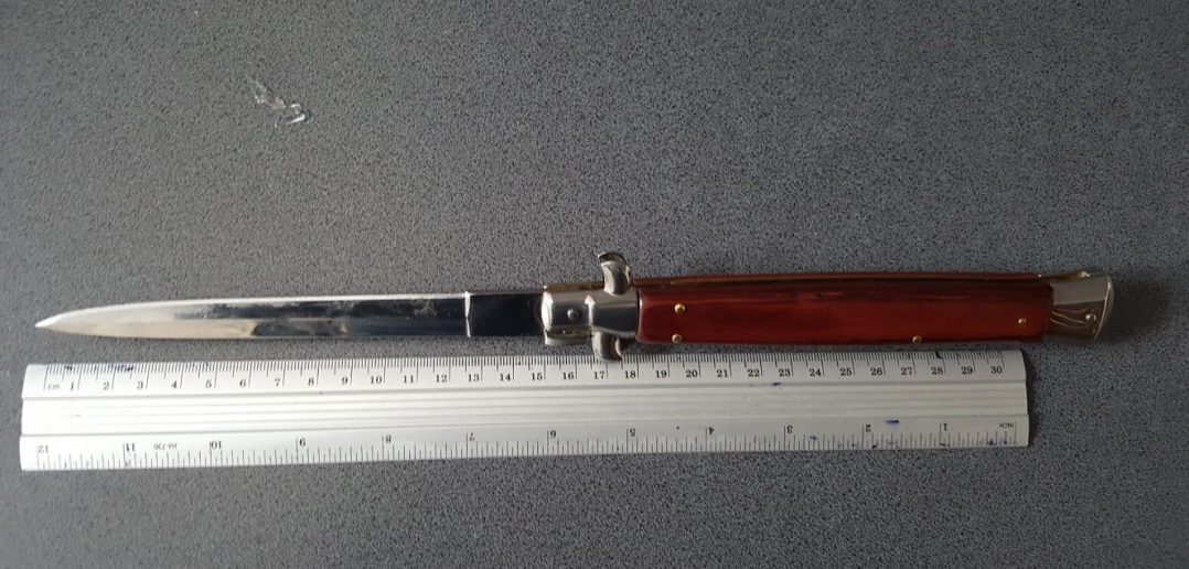 În urma controlului efectuat a fost găsit, în geantă, un cuţit tip briceag, în lungime totală de aproximativ 33 cm, din care lama în lungime de 15 cm, drept pentru care persoanei în cauză i-au fost întocmite actele de sesizare a organelor de urmărire penală sub aspectul săvârşirii infracţiunii de „port sau folosire fără drept de obiecte periculoase” şi urmează să fie înaintate organelor competente pentru continuarea cercetărilor.