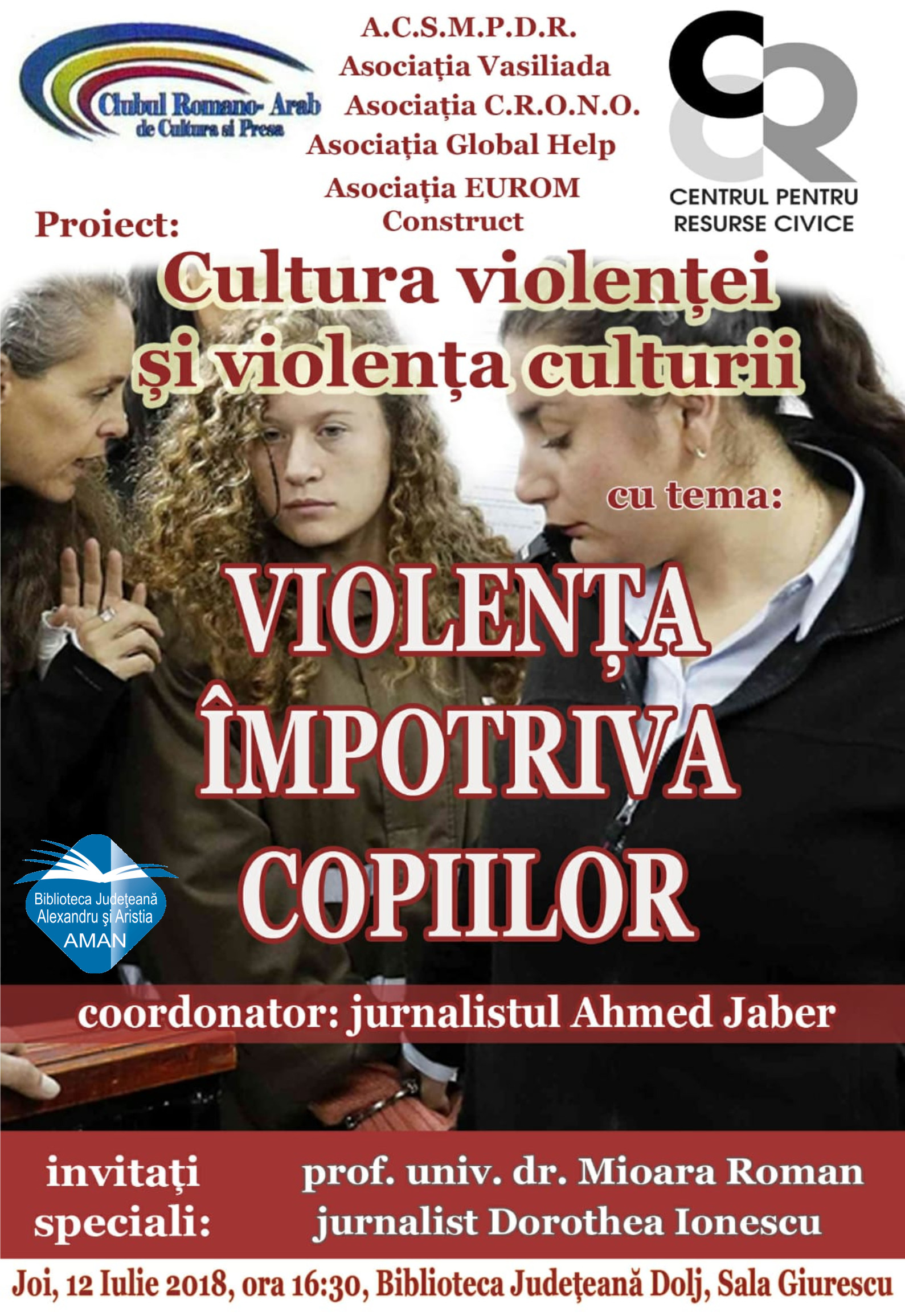 Bibioteca Județeană „Alexandru și Aristia Aman găzduiește joi, 12 iulie, în sala „Acad. Dinu C. Giurescu”, începând cu ora 16:30, o conferință interactivă în cadrul proiectului cultural „Cultura violenței și violența culturii”. Evenimentul este organizat de Clubul Româno-Arab de Cultură și Presă în parteneriat cu Asociația C.R.O.N.O., A.C.S.M.P.D.R., Asociația EUROM Construct, Asociația Vasiliada, Asociația Global Help și Centrul de Resurse Civice Constanța.
