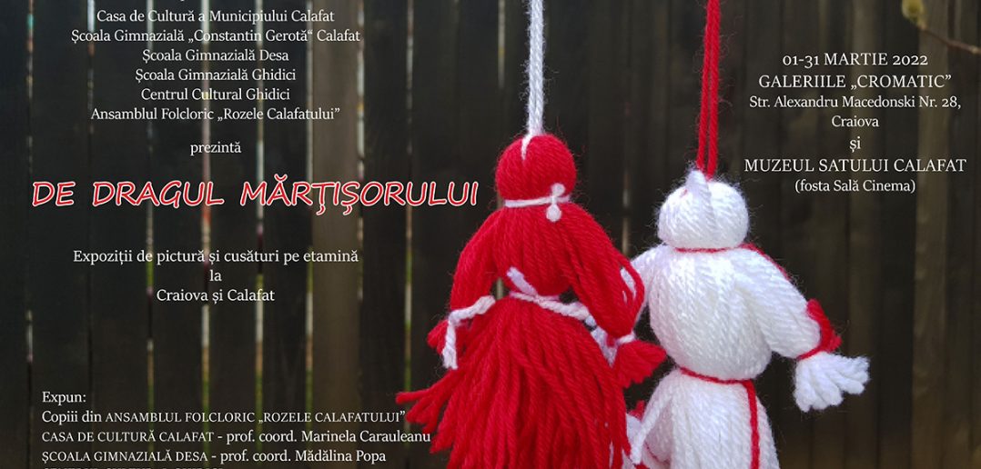 Centrul Judeţean pentru Conservarea şi Promovarea Culturii Tradiţionale Dolj celebrează luna mărțișorului și începutul primăverii prin două expoziții deschise deopotrivă la Craiova, în Galeriile „Cromatic“, și la Calafat, în perioada 01 – 31 martie 2022.