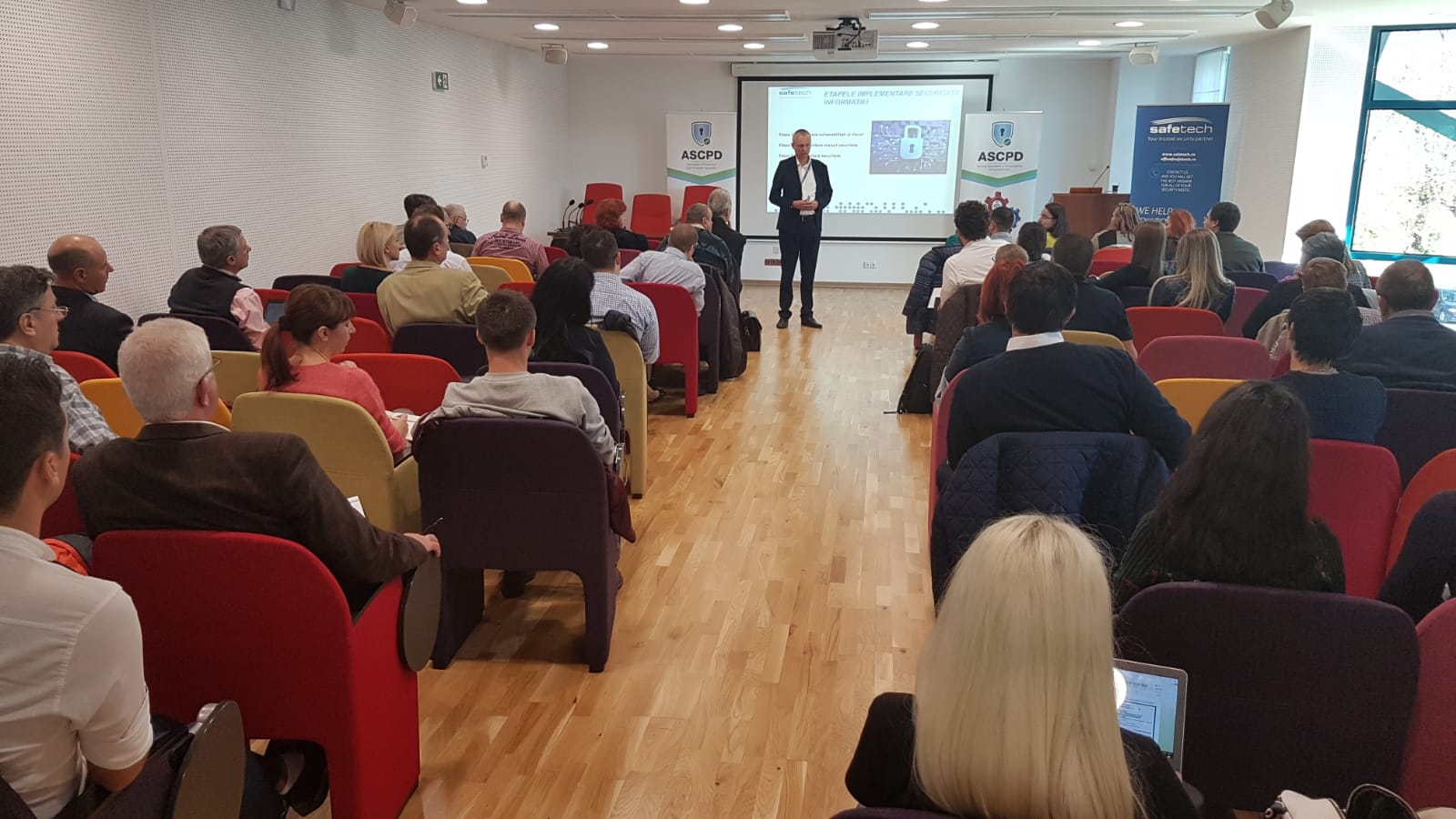 Vineri, 26 octombrie 2018, un grup de 70 de persoane care au funcția de DPO (Ofițer de Protecție a Datelor) în instituții din domeniul sanitar sau sunt membri ASCPD – Asociația Specialiștilor în Confidențialitate și Protecția Datelor, au absolvit sesiunea de instruire în domeniul securității datelor, numită “Instruire în domeniul managementului securității informatice pentru Ofițerii de Protecție a Datelor (DPO)”.