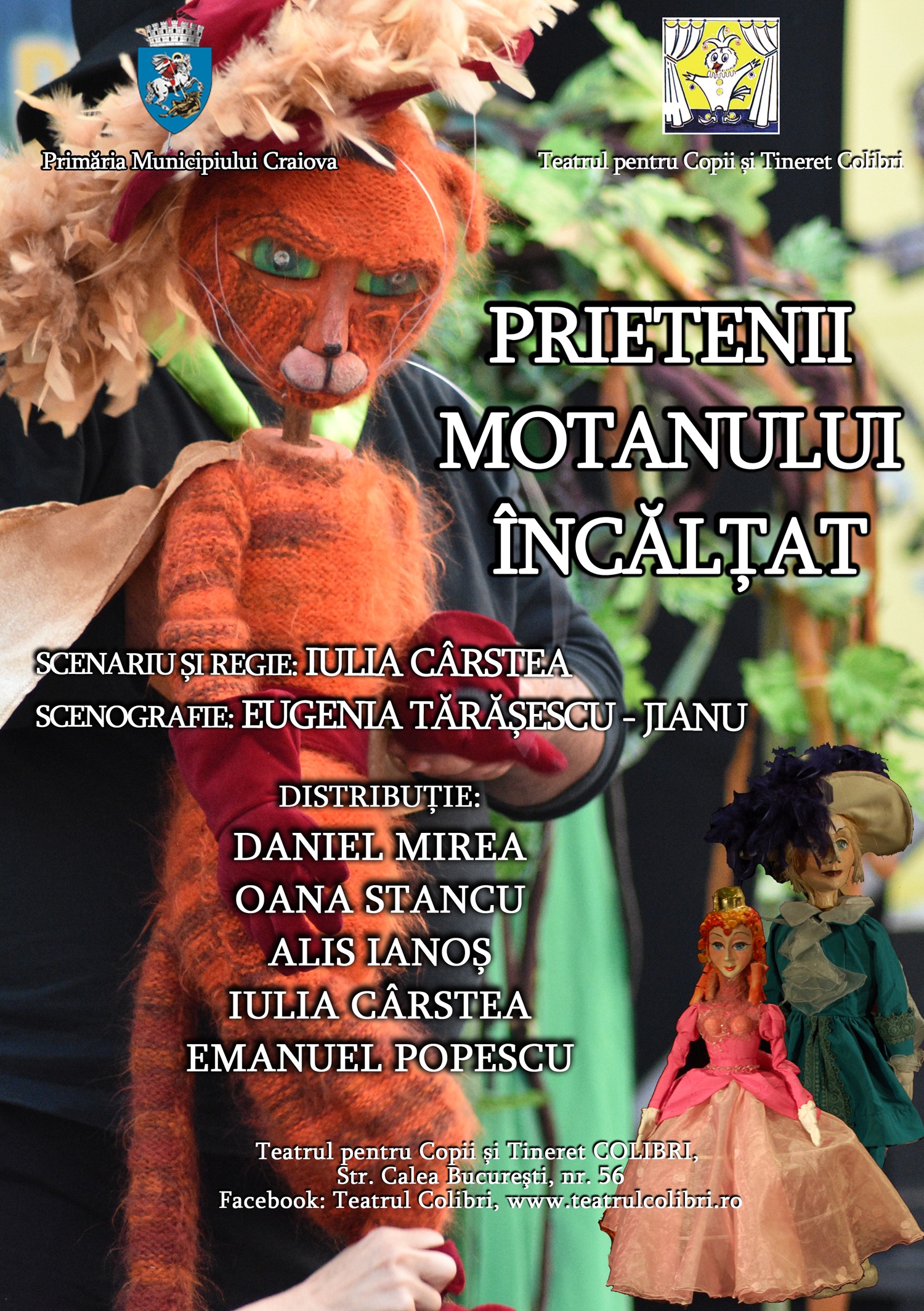 Miercuri, 18 septembrie 2019, un alt spectacol din repertoriul Colibri va călători, de această dată la Slatina. Este vorba despre Prietenii Motanului Încălțat, spectacol inclus de Centrul Judeţean de Artă şi Cultură Olt în programul Festivalului de Arte şi Tradiţii Româneşti, alături de ateliere de creație și animație stradală (18 – 19 septembrie).