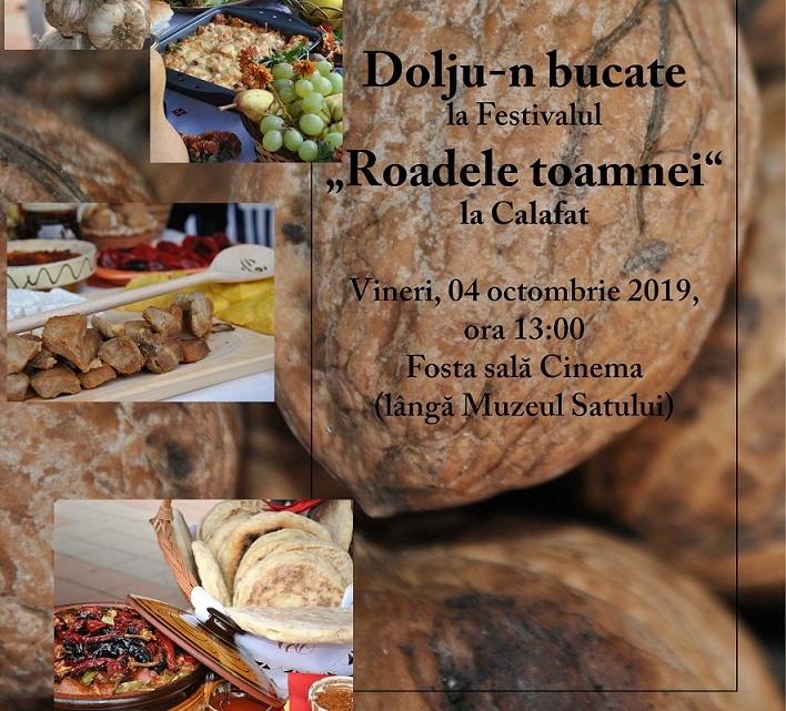 Centrul Judeţean pentru Conservarea şi Promovarea Culturii Tradiţionale Dolj vă invită la un nou moment „Dolju-n bucate“ la Calafat, organizat de Muzeul Satului și Casa de Cultură a Municipiului Calafat în cadrul Festivalului „Roadele toamnei“, vineri, 04 octombrie 2019, ora 13:00, în fosta sală Cinema (lângă Muzeul Satului).