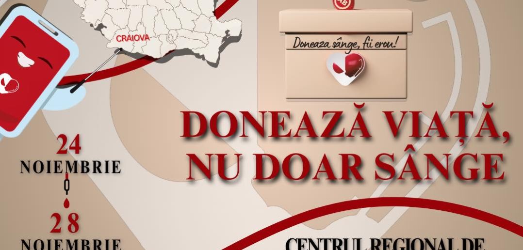 Centrul Regional de Transfuzie Oltenia lansează o nouă campanie – Donează viață, nu doar sânge! Proiectul se derulează în colaborare cu studenții din cadrul Federației Asociațiilor Studenților la Medicină din România și încurajează donarea în cele 35 centre din țară.
