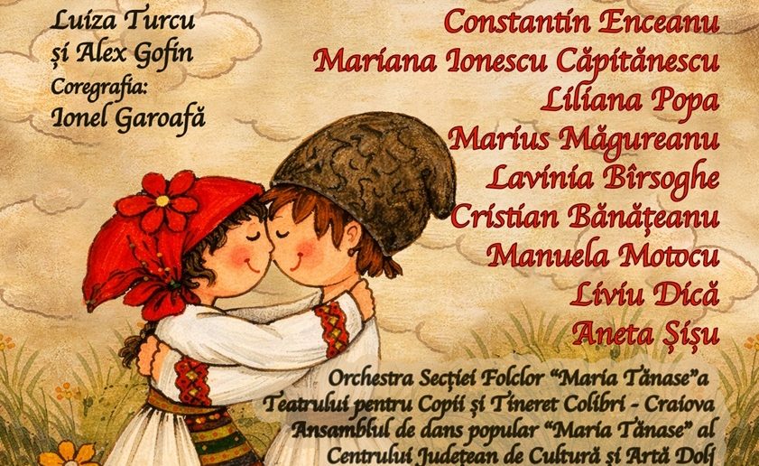 Teatrul pentru copii și tineret Colibri – Secția Folclor „Maria Tănase“, în parteneriat cu Centrul Județean de Cultură și Artă Dolj – Secția Ansamblul de dans popular „Maria Tănase” vă invită la spectacolul “Dragobetele sărută fetele”, ce se va desfăşura în data de 23 februarie 2026, de la ora 19:00 pe scena Teatrului Colibri.