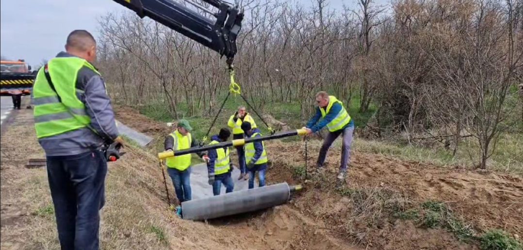 Direcția Regională de Drumuri și Poduri Craiova a instalat cu succes un produs inovativ – geocompozitul cu ciment – pe un tronson de 75m al DN55. Acest material geosintetic flexibil, umplut cu ciment, se întărește la hidratare, formând un strat de beton durabil si impermeabil. În esență, este beton la rolă, care se instalează rapid, fără a mai fi necesară turnarea de beton pe șantier.