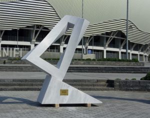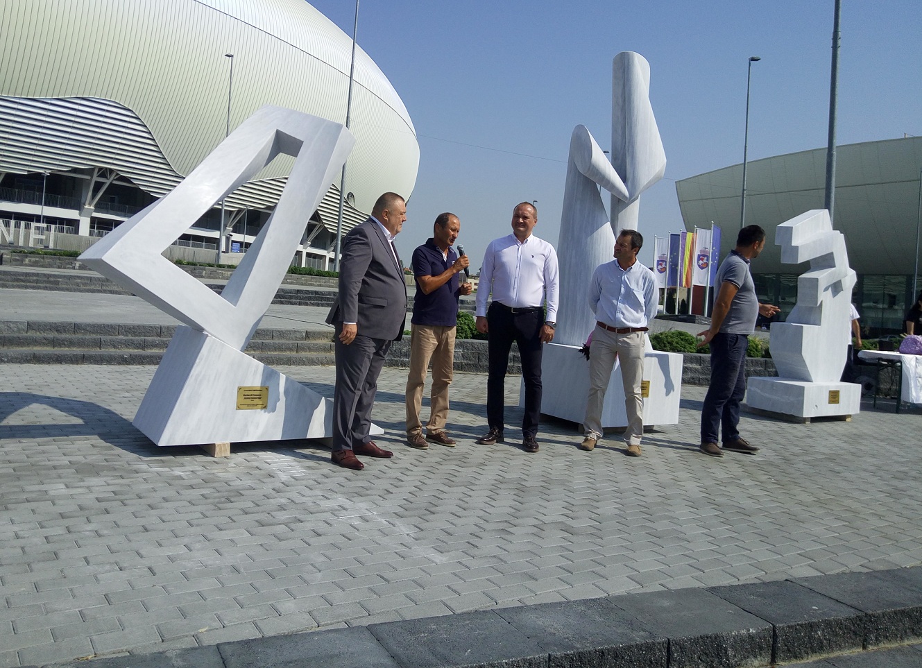 Festivitate de premiere, în această dimineață, a celor cinci sculptori români și străini care, timp de o lună, au realizat cinci opere de artă ce vor înfrumuseța Bănia. Marino DiProspero a venit tocmai din Italia pentru a ne oferi Spatial Contortion. Un reprezentant al Ecuadorului, Estrella Gavidia Milton Ramon, a realizat Organic Geometry. Cu dublă naționalitate Ferhat Ozgur Gorel provenind din Turcia și activând de mulți ani în Georgia ne oferă prin măiestria artei sale lucrarea The Shadow Player.