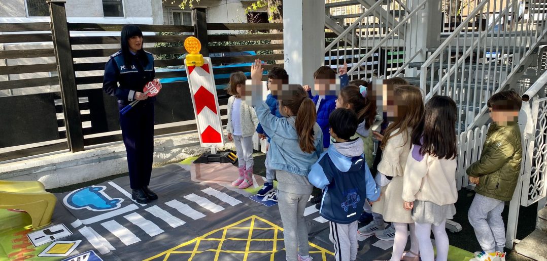 Poliţiştii le-au prezentat celor mici regulile de circulaţie şi importanţa abordării unui comportament corect ca pietoni, pentru prevenirea evenimentelor rutiere.