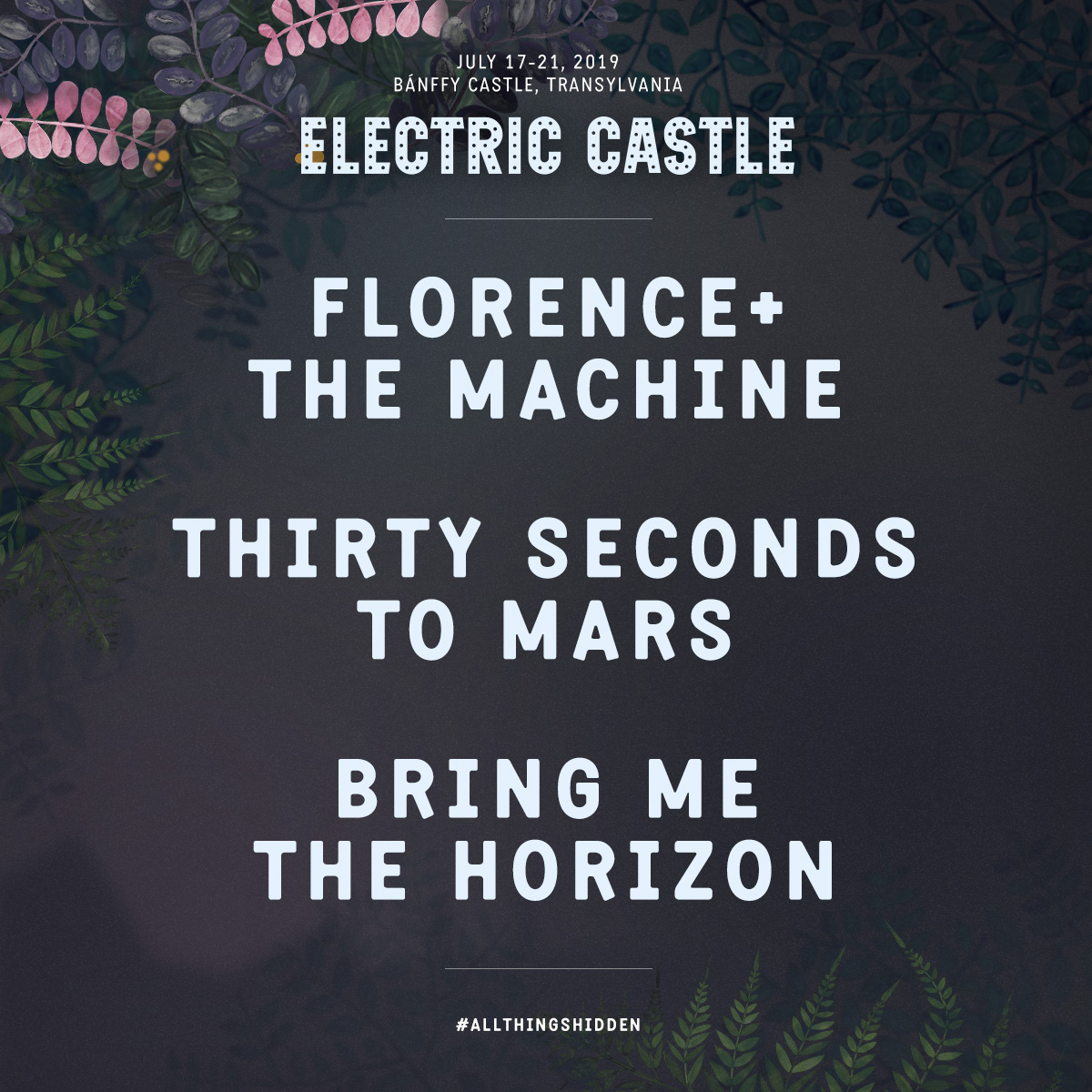 Câștigător de Oscar, rock star, fashion icon, tech investor, Jared Leto a confirmat prezența sala Electric Castle alături de fratele său, Shannon Leto; altfel spus,30 Seconds to Mars este oficial pe afișul viitoarei ediții a festivalului. Cel mai recent album al trupei, America, este promovat printr-un turneu mondial ce ajunge astfel și în România, oferind publicului cea mai ambițioasă producție semnată până acum de trupă. Iar asta nu este puțin lucru pentru acești artiști care, pe lângă un șir copleșitor de premii,dețin chiar și un record Guinness. Nu oricine are capacitatea lui Jared Leto de a jongla între producții majore de Hollywood și arene pline de zeci de mii de fani, dar în spatele reputației de megastar stă un muzician ce a reușit să vândă peste 15 milioane de albume în cele două decenii de la lansarea trupei. Walk on Water, Rescue Me, Kings and Queen sunt cele mai recente hit-uri 30 Seconds to Mars, marcând un stil nou, cu puternice influențe electro, în muzica trupei.