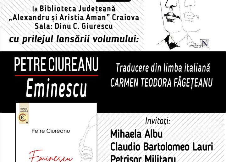 Biblioteca Județeană „Alexandru și Aristia Aman” găzduiește joi, 11 ianuarie 2024, lansare volumului „Eminescu”, autor Petre Ciureanu, volum tradus din limba italiană de Carmen Teodora Făgețeanu.