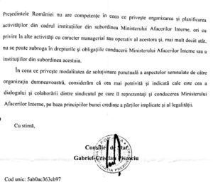 Cu toate acestea, răspunsul primit din partea Administrației Prezidențiale ne-a demonstrat cu câtă superficialitate a fost tratat subictul în condițiile în care s-a rezumat doar la „lămuririle” primite de la MAI. Este de menționat că cei din MAI de la acea vreme au mințit la modul cel mai grosolan, negând faptul că polițiștii intervin la apelurile de urgență 112 de la domiciliu, că există drumuri naționale fără polițiști rutieri pe timp de noapte sau că echipele de cercetare la fața locului intervin la infracțiunile sesziate de la domiciliu.
