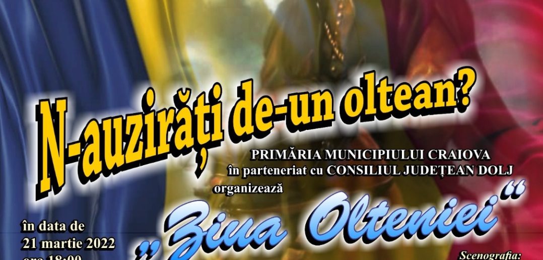 Organizate de Primăria Craiova, în parteneriat cu Consiliul Județean Dolj, toate manifestările dedicate oltenilor pentru ziua de 21 martie 2022 vor fi cu intrare liberă: de la expoziții în aer liber sau la sediul instituțiilor de cultură și până la spectacolul de tradiții N-auzirăți de-un oltean propus de Ansamblul Folcloric Maria Tănase, pe scena din Piața Frații Buzești – Centrul Vechi.