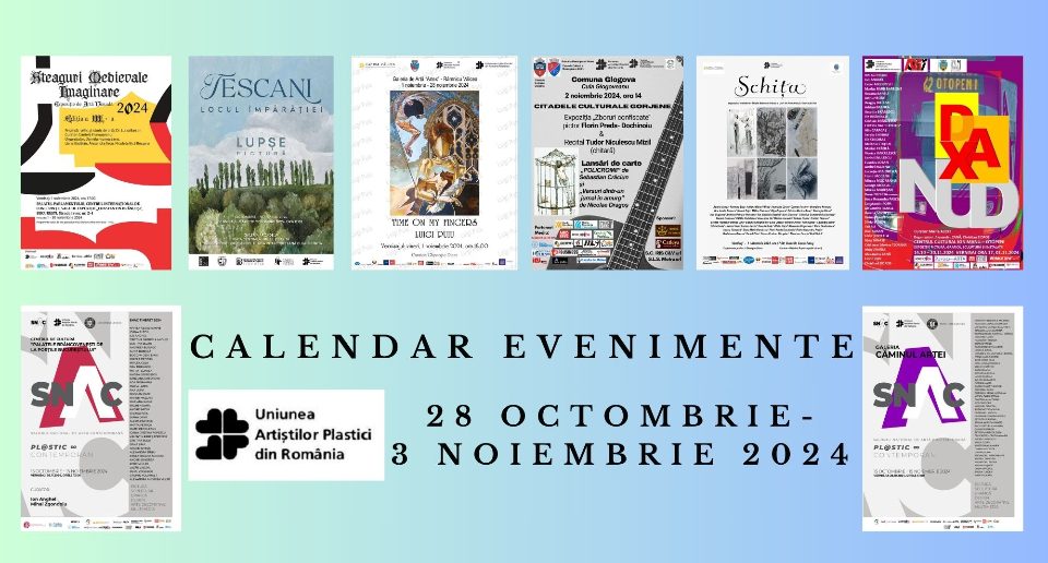 Filiala Râmnicu Vâlcea a Uniunii Artiștilor Plastici din România, în parteneriat cu Filiala Pitești a Uniunii Artiștilor Plastici din România, cu Filiala Iași a Uniunii Artiștilor Plastici din România cu Uniunea Artiștilor Plastici din România și cu Primăria Municipiului Râmnicu Vâlcea, organizează următoarele menifestări: