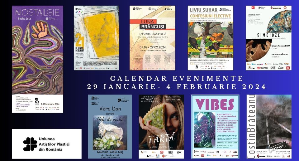 La ora 19, evenimentul dedicat sculpturii contemporane: LUNA BRÂNCUȘI 2024, organizat de Filiala de Sculptură București a Uniunii Artiștilor Plastici din România, în perioada 01-29 februarie 2024, la Galeria Academia si Galeria Simeza. Luna Brâncuși este dedicată sculpturii cu toate aspectele ce le cuprinde: de la diversitate și relevanță, la vulnerabilitate și acțiuni de protecție și conservare. Organizată cu ocazia Zilei Naționale Constantin Brâncuși, cu sprijinul Primăriei Sectorului 1, sub egida Uniunii Artiștilor Plastici din Romania, în parteneriat cu Academia Română, prin spațiul oferit de Casa Oamenilor de Știință și în Galeria Simeza, Luna Brâncuși ia startul cu vernisajul expoziției de la Galeria Academia din Casa Oamenilor de Știință (Calea Rahovei, nr. 176), unde expun artiștii: Ioan Bolborea, Bogdan Breza, Geta Caragiu, Dinu Câmpeanu, Titi Ceară, Vald Ciobanu, Florin Codre, Mircea Dăneasa, Doru Drăgușin, Darie Dup, Reka Csapă Dup, Dănila Gavriș, Alexandru Gheorghiță, Emil Cristian Ghiță, Alexandru Marinete, Ioan Medruț, Grigore Minea, Constantin Mîrzea, Andrei Marina, Alexandru Papuc, Adrian Pîrvu, Ana Zoe Pop, Constantin Popovici, Vladrimir Predescu, Dumitru Radu, Alexandru Ranga, Mircea Roman, Virgil Scripcariu, Alexandru Siminic, Nicolae Stoica, Aurel Vlad, Marian Zidaru, Victoria Zidaru. Curatoare este Doina Mândru.