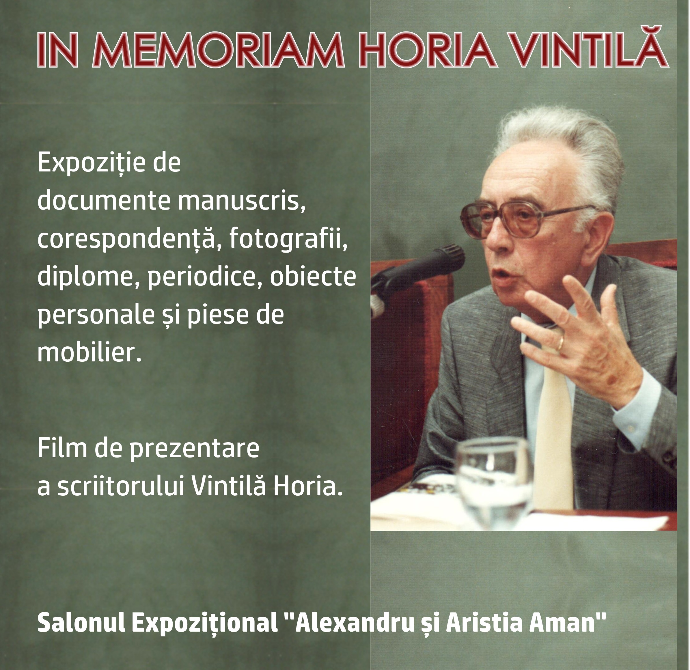 Luni, 18 decembrie 2017, Biblioteca Județeană “Alexandru și Aristia Aman” a deschis expoziția intitulată “In memoriam Vintilă Horia”. Organizată cu ocazia marcării unui număr de 102 ani de la nașterea singurului scriitor român distins cu Premiul Gouncourt, expoziția este alcătuită din cărți și documente în manuscris, dar și din piese de mobilier provenite din locuința personală a lui Vintilă Horia de la Collado Villalba, de lângă Madrid. Expoziția va putea fi vizitată până la sfârșitul anului, în cadrul Salonului Expozițional.