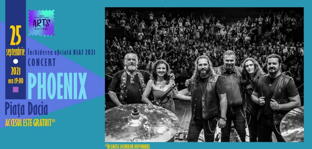 Închiderea oficială a Buzău International Arts Festival are loc sâmbătă, 25 septembrie, cu un concert mult-așteptat al trupei Phoenix în Piața Dacia din Buzău. Evenimentul va începe la ora 19:00, iar accesul este gratuit, cu respectarea reglementărilor legale.