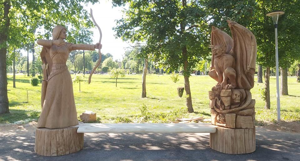 Pe parcursul rezidenței au fost create șase sculpturi în mărime naturală reprezentând personaje fantastice, inspirate din legendele si basmele universale: Vrăjitorul malefic și Zâna bună, Cavalerul și Balaurul, Arcașa și Garguia Cele șase sculpturi alcătuiesc trei băncuțe reprezentând înfruntarea dintre personajul pozitiv și vrăjmașul său de poveste, care sunt destinate să înfrumusețeze spațiile verzi și spațiile de agrement ale orașului.