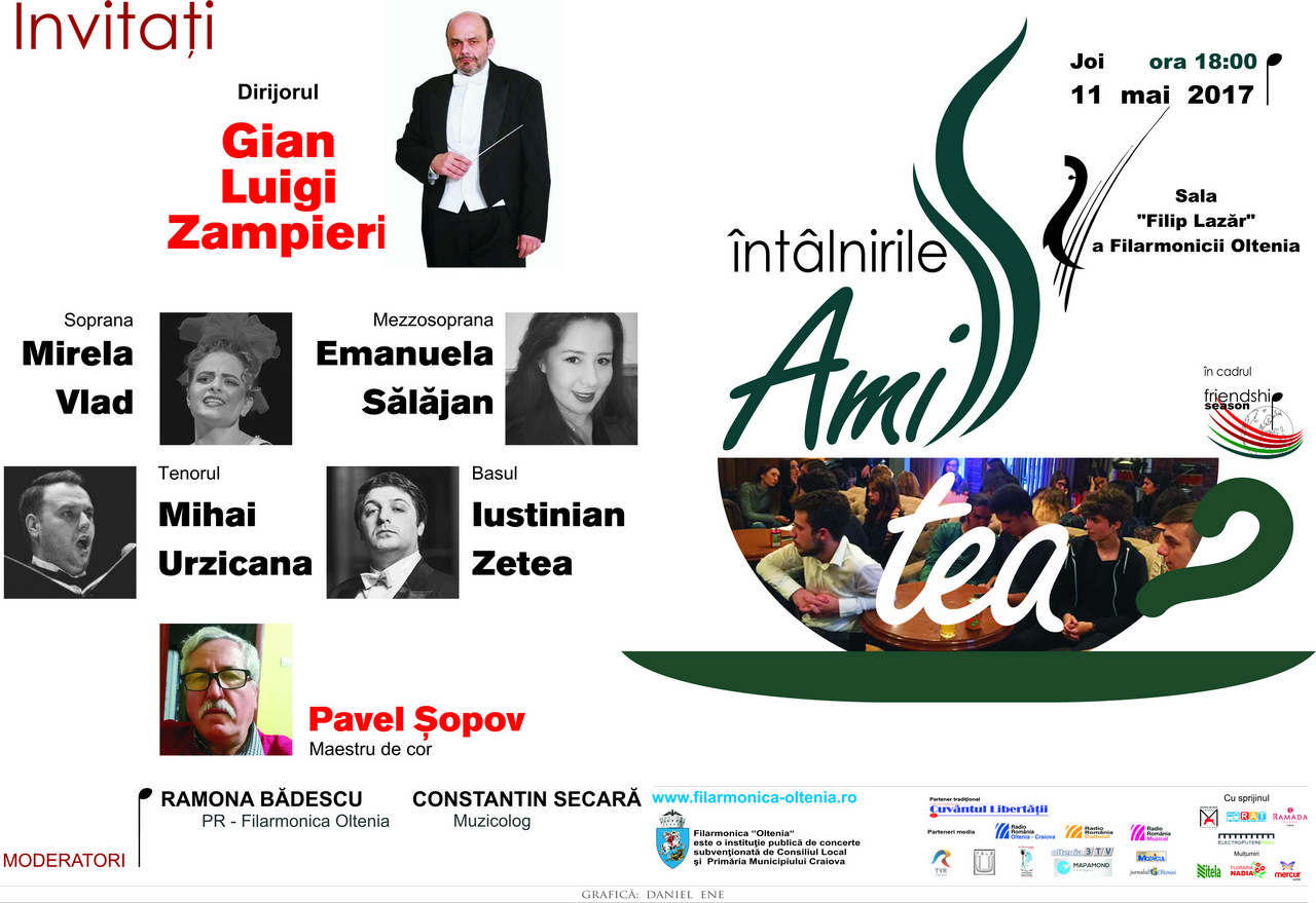 Joi, 11 mai, ora 18:00, Sala Filip Lazăr, Filarmonica „Oltenia”