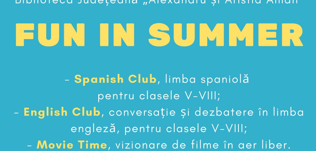 „Chiar dacă împrejurările în care ne aflăm rămân în continuare delicate, am decis să propunem și în această vară proiectul educațional „Fun in Summer”. Într-un format inedit, online și offline, le propunem craiovenilor, cu precădere elevilor din ciclul gimnazial, trei activități interactive. Dacă la cluburile de limbi străine sunt invitați să participe elevii, la vizionările și dezbaterile pe marginea filmelor pe care le vom difuza, sunt invitați să participe craioveni de toate vârstele”, a declarat Lucian Dindirică, managerul Bibliotecii Județene „Alexandru și Aristia Aman”.