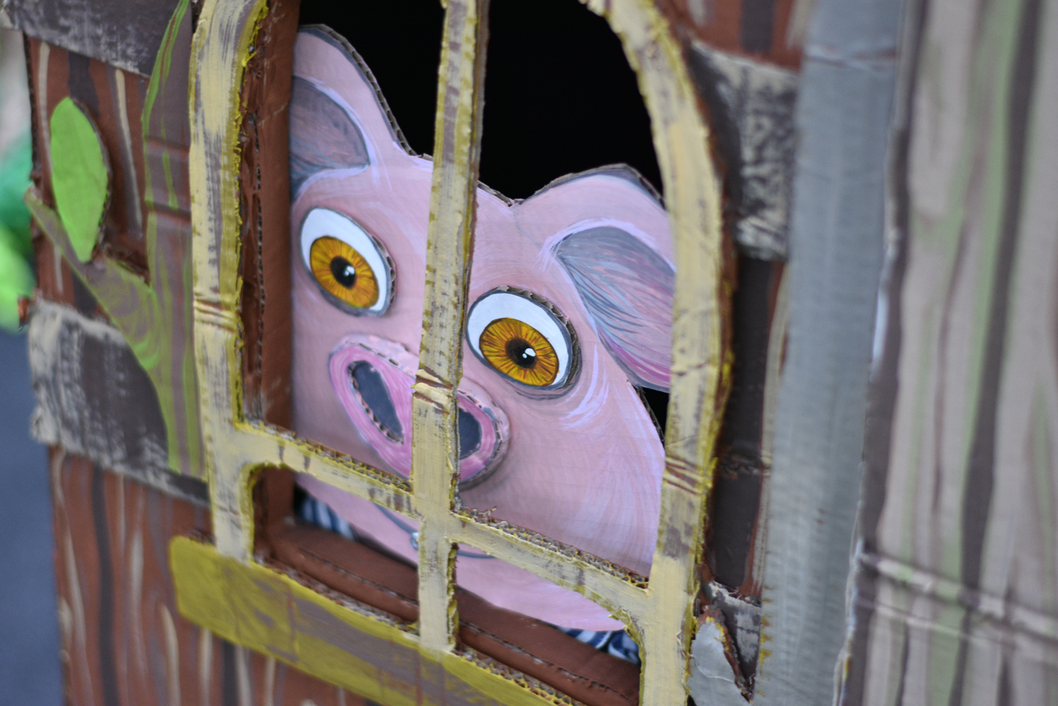 Duminică, 1 aprilie 2018, la ora 11:00 aflăm Povestea celor trei purceluși, într-un spectacol interactiv, vesel și educativ, de și cu Geo Dinescu și Marin Fagu, pictură Iulia Goanță, desen afiș Ioana (7 ani) și Andrei (6 ani) Popescu. Cei doi actori devin parteneri de scenă cu micii spectatori, se vor juca împreună, vor descoperi cât este de sănătoasă reciclarea și ce decoruri și păpuși frumoase pot fi construite din cartoane.