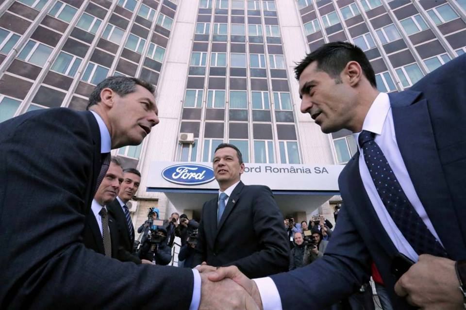 Premierul României s-a aflat, astăzi, la Craiova. Sorin Grindeanu s-a întâlnit cu Steven Armstrong, vicepreşedinte şi director operaţional al companiei Ford pentru Europa. „Am ţinut să vin astăzi la Craiova pentru a saluta ceea ce, de fapt, se va întâmpla în perioada imediat următoare, şi anume extinderea companiei prin angajarea a încă aproape o mie de persoane, ceea ce înseamnă foarte mult, tocmai pentru a da un semnal de încurajare. E foarte important pentru noi ca marile companii mondiale să găsească în ţara noastră un mediu atractiv, să putem să le venim în întâmpinare astfel încât afacerile pe care le-au deschis, aşa cum este cazul Fordului la Craiova, într-un mediu propice să se poată dezvolta, iar lucrul ăsta se întâmplă. Încă o mie de oameni, dacă vorbim direct, aici, la companie, sigur, şi mulţi alţii pentru supplierii care vor da subansamble şi furnizează subansamble pentru Craiova”, a precizat premierul.
