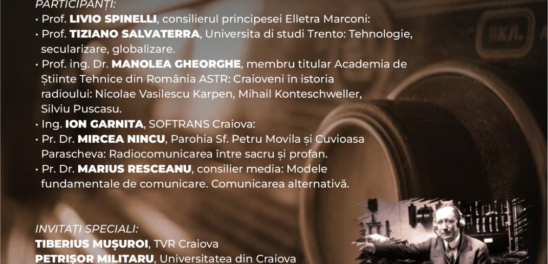 Muzeul Cărții și Exilului Românesc, în colaborare cu TVR Craiova și compania Softrans, sub patronajul Prințesei Elettra Marconi, organizează joi, 26 iunie 2025, la ora 17.00, conferința de studiu „Guglielmo Marconi, tatăl RADIO și TV”.