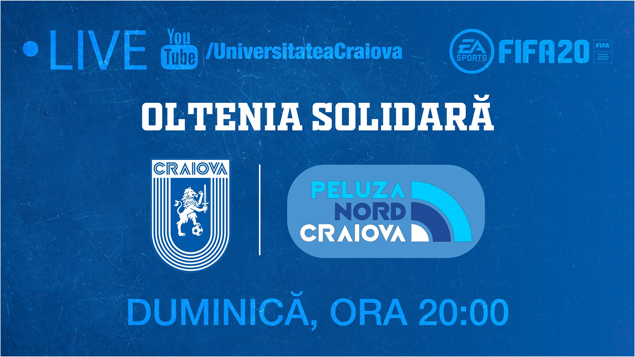 „Peluza Nord Craiova și Universitatea Craiova, împreună în lupta contra COVID-19 printr-un un meci demonstrativ de FIFA 20, urmând ca suma obținută din vânzarea biletelor virtuale să fie donată Spitalului Clinic de Boli Infecțioase și Pneumoftiziologie „Victor Babeș” din Craiova. Biletele virtuale pentru acest joc, pot fi achiziționate de aici: https://www.eventim.ro/ro/bilete/universitatea-craiova-peluza-nord-stadionul-ion-oblemenco-550714/event.html