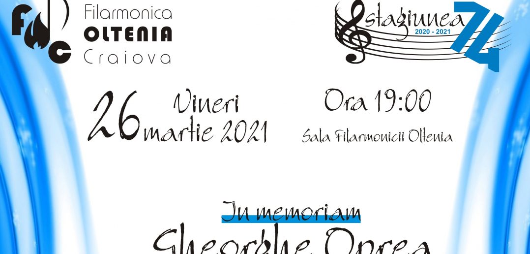 Concertul coral de vineri, 26 martie 2021, ora 19:00, dirijat de prof.univ. dr. Eugen Petre Sandu este dedicat memoriei maestrului Gheorghe Oprea, etnomuzicolog, membru al Uniunii Compozitorilor și Muzicologilor din România, fondator și dirijor al corului „Gaudeamus” al Academiei de Muzică din București, cu care a înregistrat peste 80 de lucrări la Radio și a susţinut peste 500 de concerte în țară și în străinătate. În program vor fi lucrări ale maestrului Gheorghe Oprea şi compoziţia în primă audiţie absolută „Abţibild” de Eugen Petre Sandu.