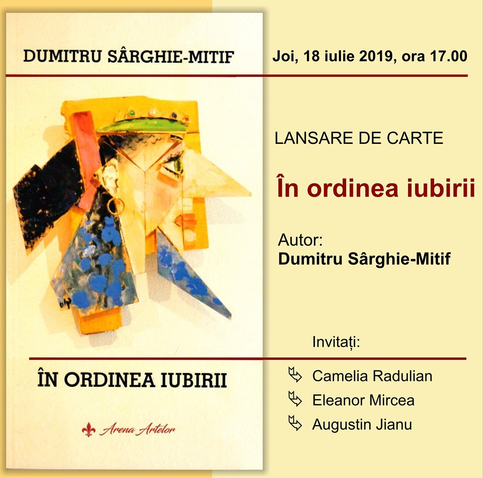 Biblioteca Județeană „Alexandru și Aristia Aman” găzduiește joi, 18 iulie 2019, începând cu ora 17,00, în sala „Acad. Dinu C. Giurescu”, lansarea volumului „În ordinea iubirii”, autor Dumitru Sârghie-Mitif.