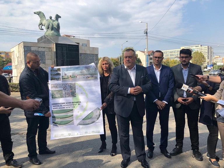 înălțime. Au fost discutate aceste proporții cu comisia de cultură din cadrul ministerului și se va reface, inclusiv, această placare, cu inscripționarea cu toți primarii de-a lungul anilor, realizată pe contur și care să fie mult mai discretă și mai acceptabilă de ochiul public. Este o lucrare care va duce la angrenarea piațetei în parcul „Romanescu”, atât ca modernizare, dar și ca materiale și de tot ce înseamnă reabilitare în termeni de monument istoric”, a explicat edilul craiovean.