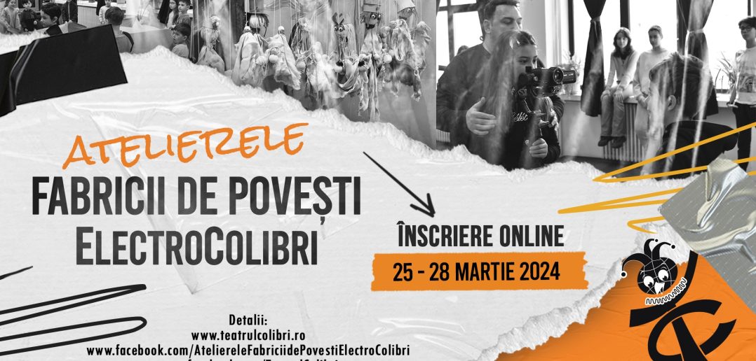 Înscrieri se fac în intervalul 25 – 28 martie 2024, doar prin formular on-line, link-urile pentru fiecare atelier în parte fiind disponibile din 25 martie, de la ora 09:00, până în data de 28 martie – ora 12:00 pe site-ul instituţiei: www.teatrulcolibri.ro şi pe paginile de facebook: AteliereleFabriciidePovestiElectroColibri/ și TeatrulColibri.