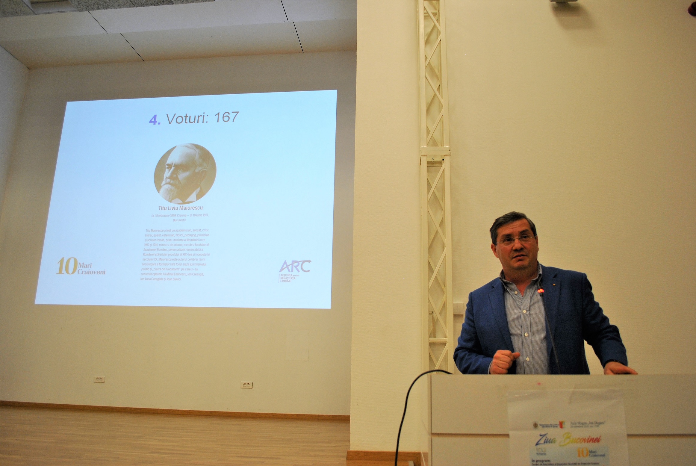Într-un discurs fermecător despre moștenirea culturală și istorică locală, prof. univ. Florea Firan a evocat, cu pasiune, trecutul: „Am fost invitat aici cu precădere pentru a spune câteva cuvinte despre istoria Craiovei. Timpul, însă, nu-mi este prieten în acest moment, căci sunt atâtea lucruri de povestit. Sunt atâtea nume care și-au lăsat amprenta în atâtea domenii, încât numai dacă începem să vorbim despre literatură, despre învățământ, despre cei care au trecut pragul Colegiului Carol I, iată, ai cărui elevi se află și astăzi aici, nu ne-ar ajunge minutele. Felicit inițiatorii proiectului 10 Mari Craioveni pentru această acțiune grozavă și pe acești tineri decani, cât și pe acești tineri din sală, pentru că se implică în astfel de activități.” În contextul Zilei Bucovinei, acesta a prezentat și o valoroasă carte semnată de scriitorul bucovinean Theodor Ștefanelii, „Amintiri despre Eminescu”, reeditată recent de Scrisul Românesc.