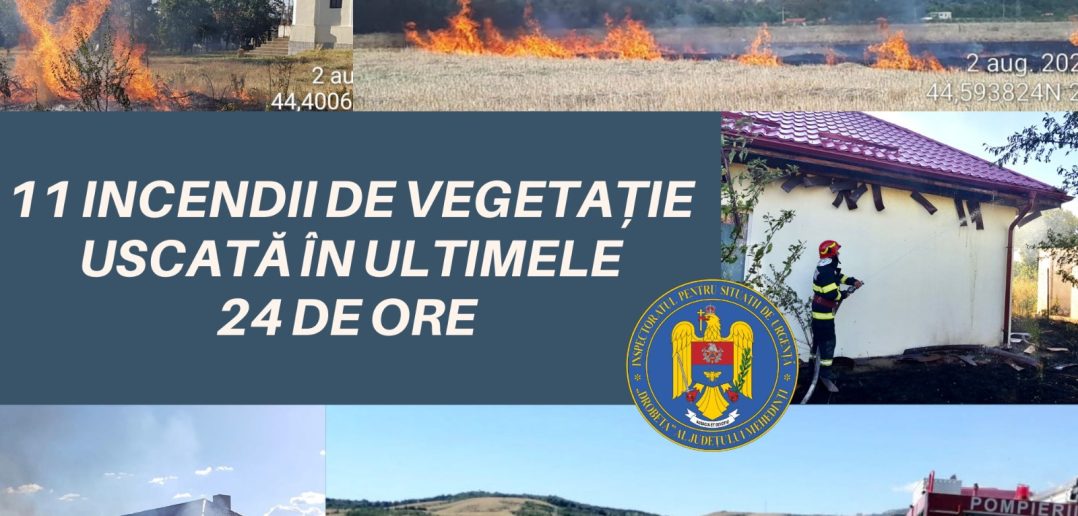 Pompierii militari din cadrul Inspectoratului pentru Situaţii de Urgenţă “Drobeta” al judeţului Mehedinţi au intervenit, în ultimele 24 de ore, pentru stingerea a 11 incendii izbucnite la vegetație uscată și miriște produse în Stângăceaua, Vlădaia, Strehaia, Drobeta Turnu Severin (2), Șimian, Vânju Mare (2), Hinova, Breznița Ocol și Pădina. Focul a distrus aproximativ 11 hectare de vegetație uscată și 22 hectare de miriște.