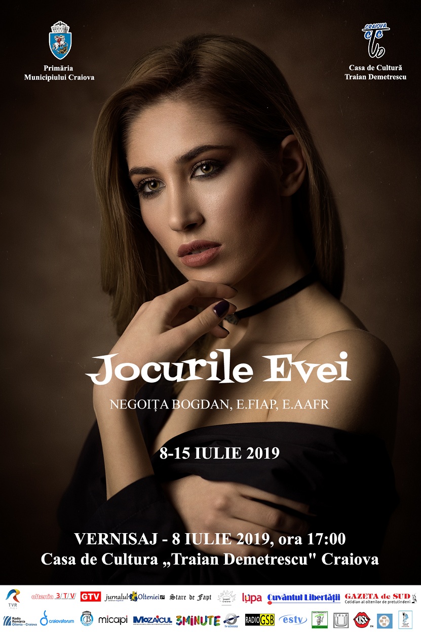 Luni, 8 iulie 2019, ora 17.00, la Casa de Cultura “Traian Demetrescu” din Craiova va avea loc vernisajul expoziției personale de fotografie „Jocurile Evei” a artistului fotograf Negoiță Bogdan. Sunt prezentate publicului 31 de fotografii color și monocrom reprezentând portrete feminine.