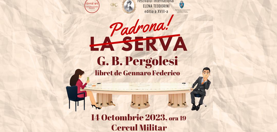 Sâmbătă, 14 octombrie 2023, la ora 19.00, în sala Cercului Militar din Craiova, va avea loc spectacolul La Serva Padrona (Servitoarea Stăpână), operă compusă de Giovanni Battista Pergolesi în 1733, la 23 ani, practic certificatul de naștere a operei comice.