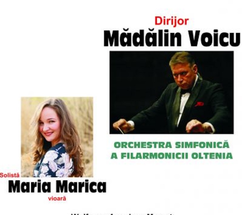 Vineri, 23 iunie, ora 19:00 – Concert extraordinar ”Great Classical Composers” – Orchestra Simfonic ă a Filarmonicii „Oltenia” – Dirijor – Mădălin Voicu: Solistă: Maria Marica (vioară)