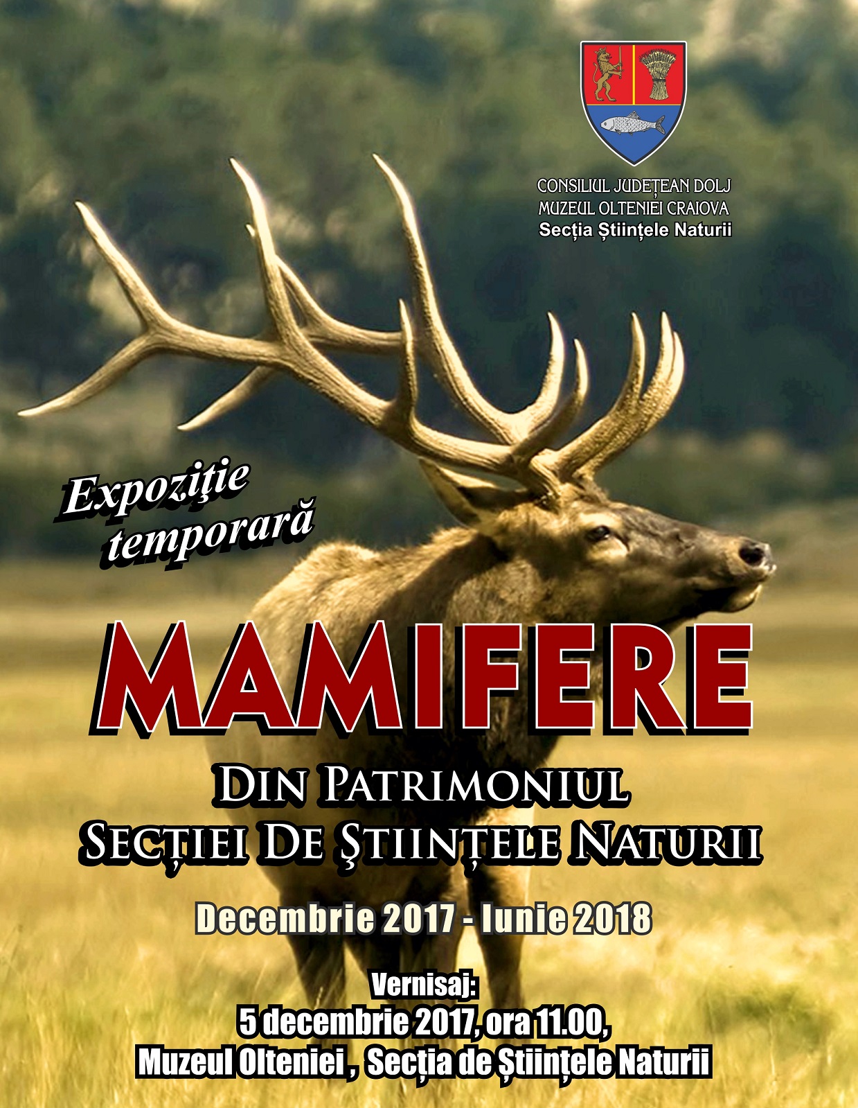 Expoziţia „Mamifere din patrimoniul Secţiei de Ştiinţele Naturii“ are un caracter ecologic, biogeografic şi sistematic, prezentând piese valoroase existente în colecţia de mamifere din patrimoniul Secţiei de Ştiinţele Naturii a Muzeului Olteniei, precum şi aspecte din viaţa acestora. Din cele aproximativ 100 de specii de mamifere din fauna României, 72 au nevoie de măsuri de ocrotire.