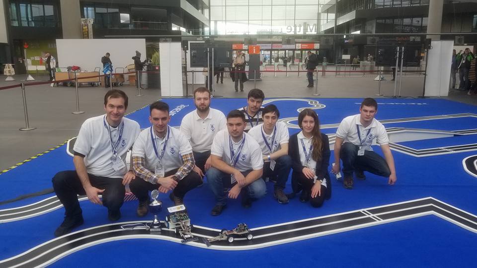 Echipa Fastech formată din studenţii: Laurenţiu Păstae (Master Sisteme Automate Incorporate – SAI), Radu Cîrlig (Master Ingineria Calculatoarelor şi Comunicaţiilor), Alexandru Tilinca (Master Tehnologii Informatice în Ingineria Sistemelor), Alexandru Constantin (Electronică Aplicată, anul III) şi coordonator ş.l.dr. Ionuţ Resceanu (Departamentul de Mecatronică şi Robotică) a obţinut locul II și medalia de argint.